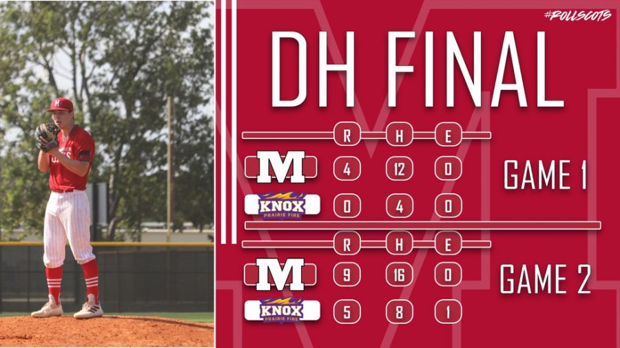 The Monmouth College baseball team went on the road Wednesday and swept Knox with wins of 4-0 and 9-5. The Scots (6-9, 2-2) got a dominating pitching performance from freshman Cam Anderson (Bloomington, Illinois) in the opener and then got the bats going in game two.