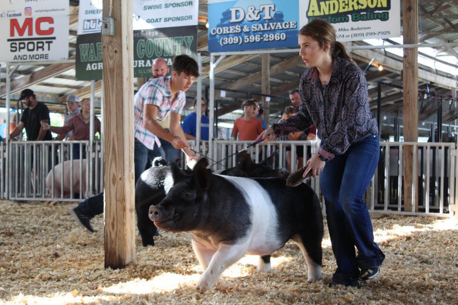 Thursday at the Warren County Agricultural Fair kicked off with the swine show. Among the showman in the ring was Addyson Ryan, who brought five pigs with her to the show. Ryan is a member of the Willing Workers 4-H club.