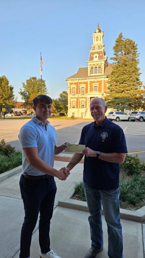 Lindsey May, left, the son of Lindsey and Karen May of Macomb, accepts a $500 Fraternal Order of Police (FOP) scholarship from Spoon River Valley FOP Lodge 427 President Donald “Ike” Hackett in Macomb. Lindsey’s father is a Lodge 427 member and is employed by the Knox County Sheriff’s Office. Lindsey is a freshman at Western Illinois University majoring in criminal justice, and has also enlisted in the Illinois Air National Guard 182nd Air Lift Wing based in Peoria as a Loadmaster for C-130 cargo planes. He will enter basic training at a later date.