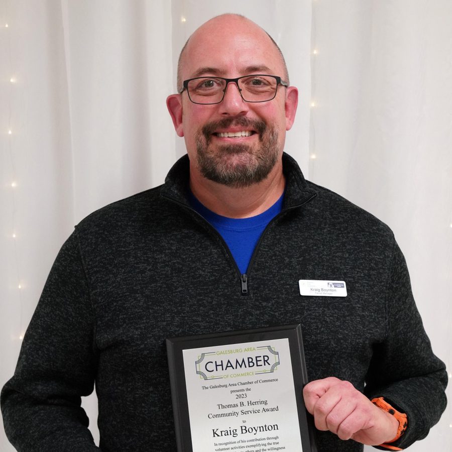 The Galesburg Area Chamber of Commerce is pleased to announce Kraig Boynton is the recipient of the 2023 Thomas B. Herring Community Service Award at the Galesburg Chamber of Commerce’s annual Thanksgiving Luncheon.