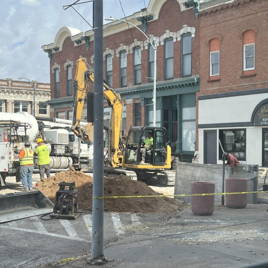 Construction has begun around the square in Downtown Monmouth as water lines are being replaced ahead of the streetscape beautification anticipated to begin in June. Monmouth Police Chief Joe Switzer reminds motorists to slow down and watch for equipment and workers: