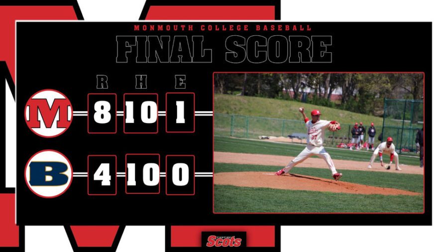 MONMOUTH MOMENTS: Dye had three hits with a double and two singles Lummus has 12 multi-hit games on the season Lummus reached the 100 career-hit mark on Saturday, joining Guillermo and Houck as Scots to reach that milestone in 2024 He is tied for second on the team with eight doubles … Guillermo hit his 15th career home run, tied for ninth on the career list with Lou Vitali (1974-77) He is tied for eighth on the single-season list with seven homers, the most in a season since 2018 when Grant Myers hit 10 and Mike Dato hit eight Guillermo also moved into 10th place on the career RBI list with 92 Reed has four career homers, two in 2023 and two this season The 7 1/3 innings are a career-high for Zaayenga who went seven innings on March 13 and April 10 The nine strikeouts is also a new career high, surpassing the seven on April 10 against Knox Beloit won the season-series 2-1 and leads the all-time series 21-20 Monmouth ended the Bucs 6-game win streak in the series The Scots play on the road again on Tuesday with a 6 p.m. start at Augustana Monmouth plays at Knox on Thursday before hosting first-place Lawrence on Saturday and Sunday.