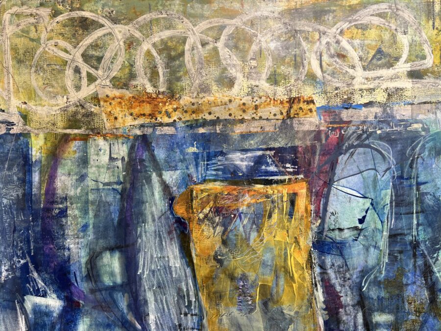 **Artist credit: Kent Broadbent “Kiss the Sky” cold wax and oil on panel