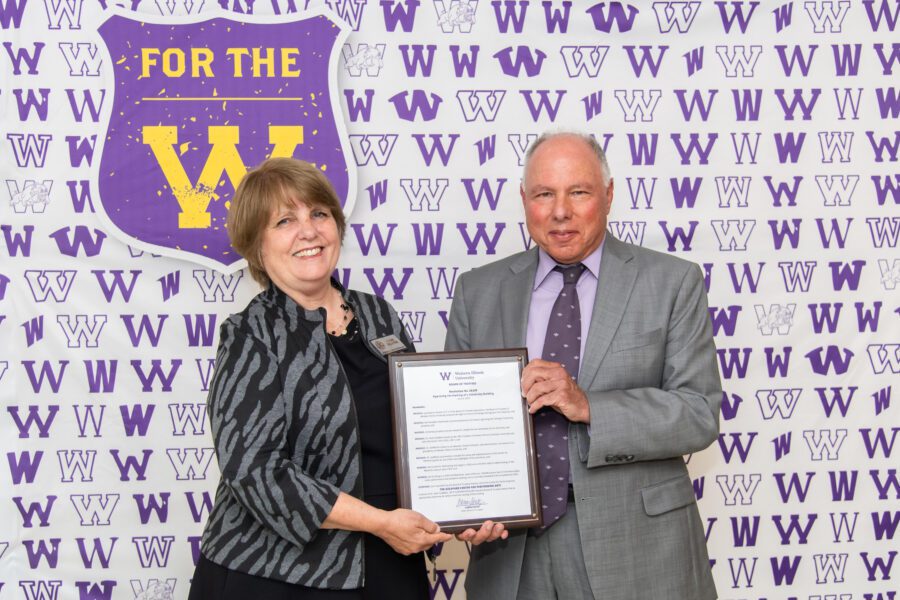 “How fortunate WIU was to have a leader that left a positive impact on our students, our faculty, our employees and our community,” said Stutz. “Your selfless energy and commitment will now be remembered daily by all who attend or pass by this beautiful new addition to our campus.”