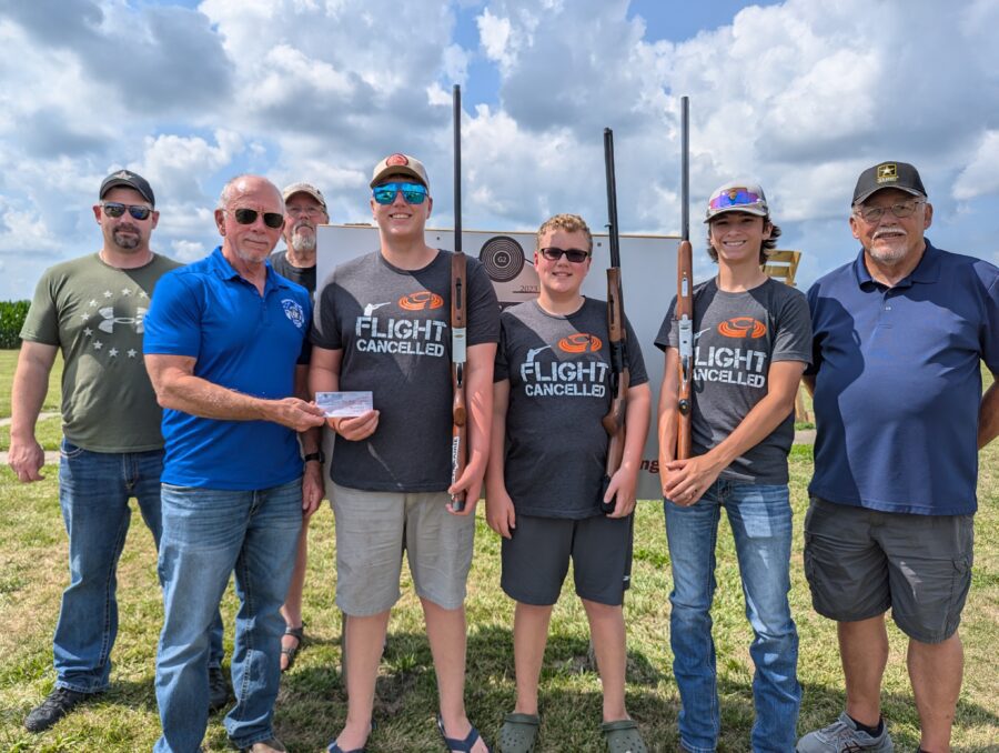 The Spoon River Valley Fraternal Order of Police Lodge 427 presented the West Prairie High School (Colchester) Trap Shooting Team with a $500 check as a donation to the program on Saturday, July 13. Present at the check donation were, left to right, Trap Team Coach Andy Jackson; Lodge 427 President Donald “Ike” Ike Hackett; Lodge 427 Treasurer Andy Zimmerman; team members Cameron Peters, Cody Peters and Aiden Percy; and McDonough County FOP Trustee Jim Percy.