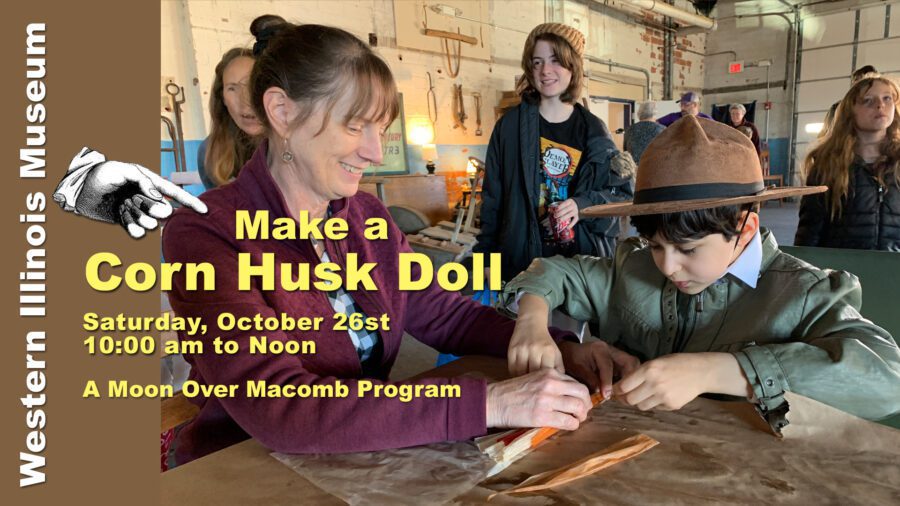Celebrate the harvest season with us at the Western Illinois Museum during Downtown Macomb’s Moon Over Macomb festivities! On Saturday, October 26th, from 10:00 AM to Noon, drop in for a hands-on, guided workshop where guests can craft corn husk dolls while learning about historic culinary traditions.