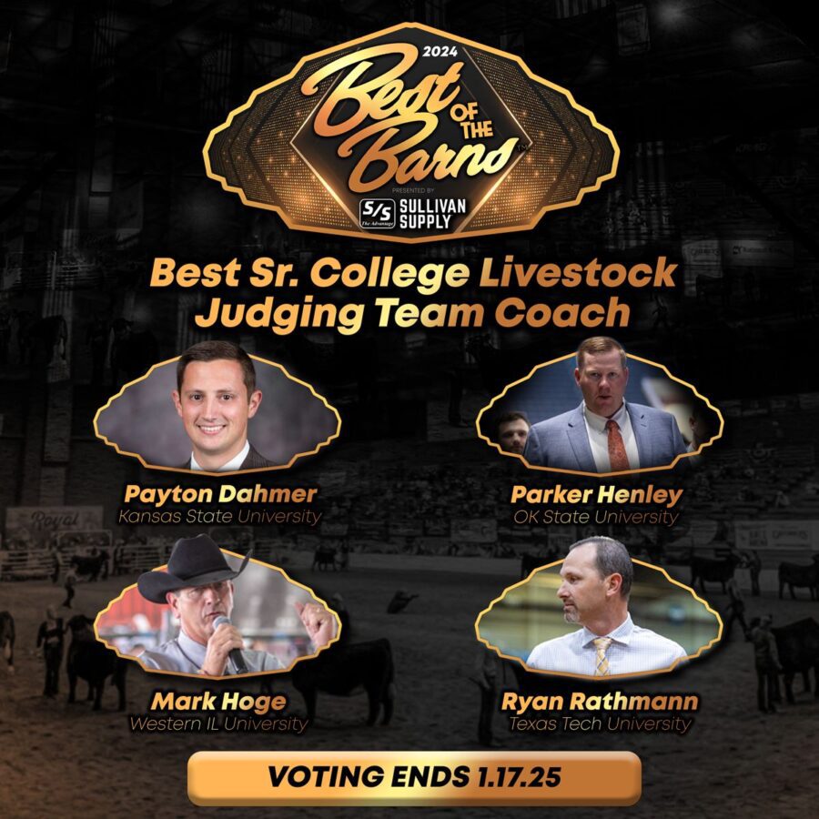 Sullivan’s Best of the Barns Awards is regarded as one of the most prestigious honors in the livestock industry. Winners are chosen by peers in the industry and will be announced in the coming weeks. The program celebrates individuals and organizations that demonstrate exceptional contributions and leadership in their respective fields.