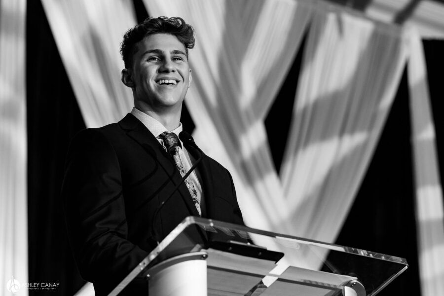 “After submitting my speech to a competition, I was selected to be a guest speaker,” said Szelc, who attended the event with his mother, Franchi. “I essentially told my life story and how the scholarship had such a huge impact on my life, which I hope encouraged the attendees to donate to this amazing cause.”