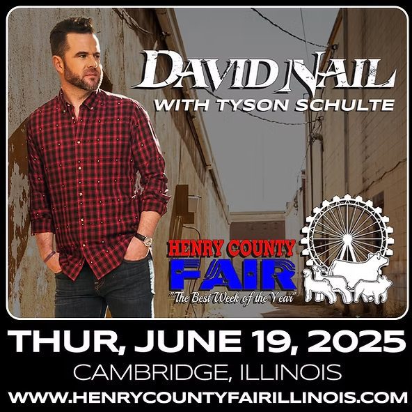 The Henry County Fair Board is thrilled to announce the lineup for the 2025 Fair concert! This year, the fair will feature a country music artist renowned for having one of the best male voices in Nashville. David Nail, who has over one billion streams and two million social media followers, will headline the concert on Thursday, June 19, 2025. The multi-platinum singer-songwriter is known for multiple chart-topping hits and beloved songs, including “Let It Rain,” “Whatever She’s Got,” “Red Light,” “The Secret,” “Sounds of a Million Dreams,” and many more.