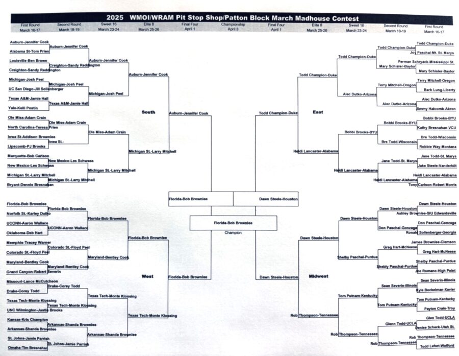 2025 Pit Stop Shop/Patton Block March Madhouse Contest prize list and updated bracket.
