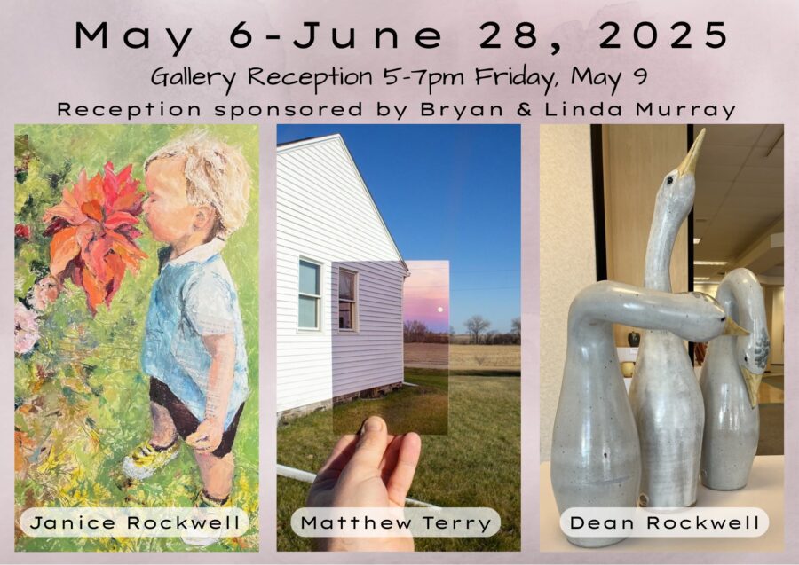 Their exhibit will run from May 6 to June 27, with an opening on May 9 from 5-7 p.m. The sponsors for the opening are Bryan and Linda Murray.