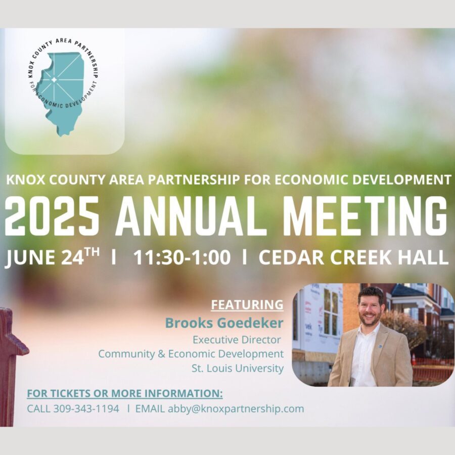 On Tuesday, June 24th, the Knox County Area Partnership for Economic Development will host their 10th annual meeting at the Cedar Creek Hall in Galesburg from 11:30 am to 1 pm. President Ken Springer shares this years’ keynote speaker: