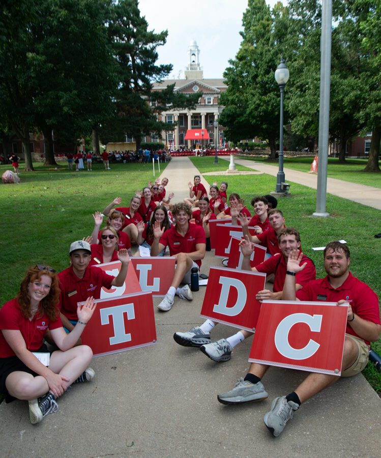 “We’re so back!” exclaimed Brady Arrenius ’26, who was with a gathering of Zeta Beta Tau brothers and other returning students just inside Winbigler Hall.