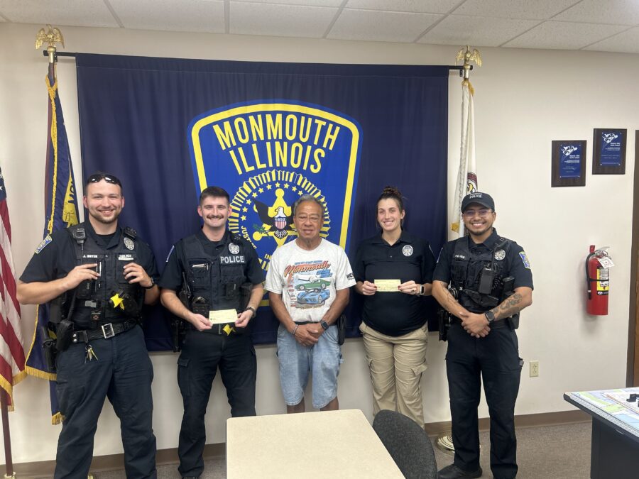Clifford Adams, President of the Maple City Street Machines, that sponsor and run the Monmouth Car Show, donated $500 to Power for Seniors and $500 to Cops and Kids programs. These programs are sponsored by the Monmouth Fraternal Order of Police and help to serve our community locally. The “Power for Seniors” event is an annual community program hosted by the Monmouth Fraternal Order of Police Lodge 265, in partnership with the Strom Center and other local organizations, to provide assistance to local seniors. Cops and Kids is a Holiday program where donations are used to buy Christmas presents for approximately 20 local children. Each child is accompanied by either a Monmouth Police Officer or a Warren County Sheriff Deputy while choosing their gifts. The children and their families are then treated to a pizza party.