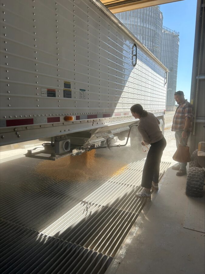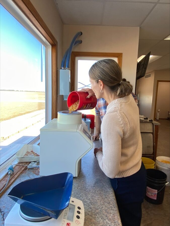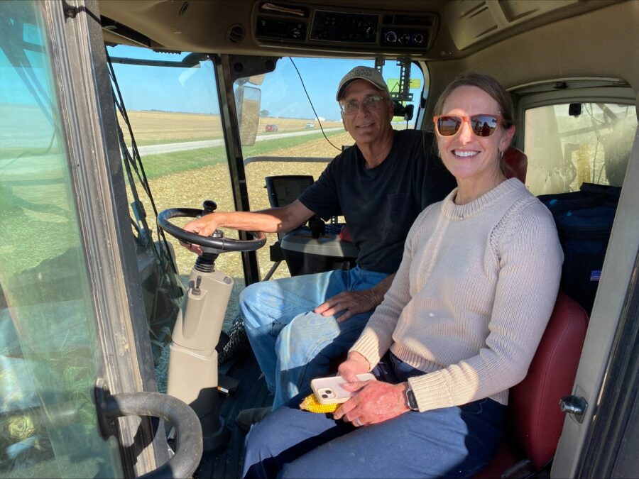 “We hosted our new Adopt-A-Legislator, we had Representative Deuter from the 45th District from the Elmhurst area in the suburbs. We just started building our relationship with her and she came and visited us. We took her to Cameron Grain and Jake went through a tour and she got to dump a truck. We took her out to the Moore’s, and she got to harvest and ride in a combine with Ron. I know he talked about this energy bill that we are hearing about in Illinois with her, they talked soybeans, just the general farm economy, and then we headed back to Monmouth to Jamieson Community Center where she got to speak with Nancy.”