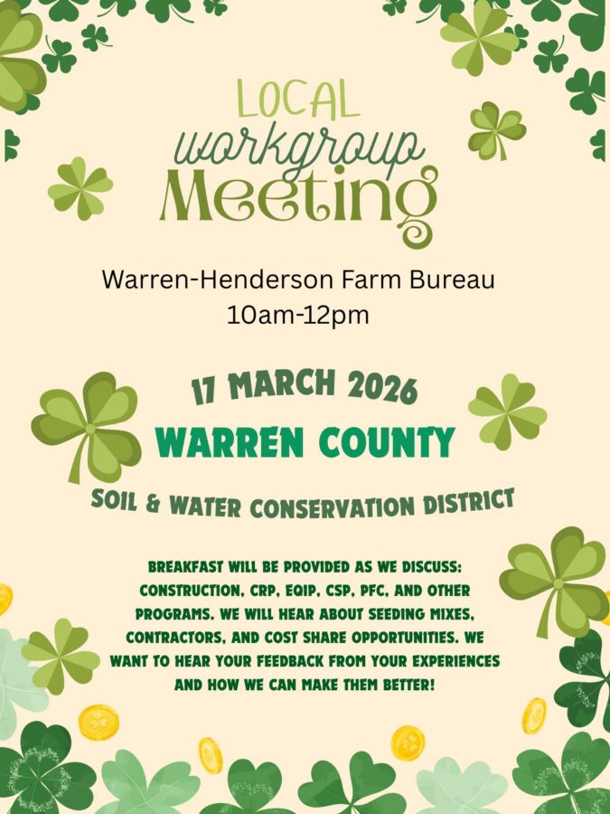 The Warren County Soil and Water Conservation District shared this message on their Facebook page, highlighting an upcoming event on March 17th: