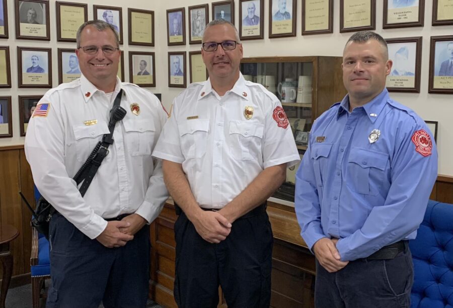 Monmouth Fire Chief Casey Rexroat is celebrating 20 years as a member of the department alongside Assistant Chief Craig Cozadd and Gary Carson.