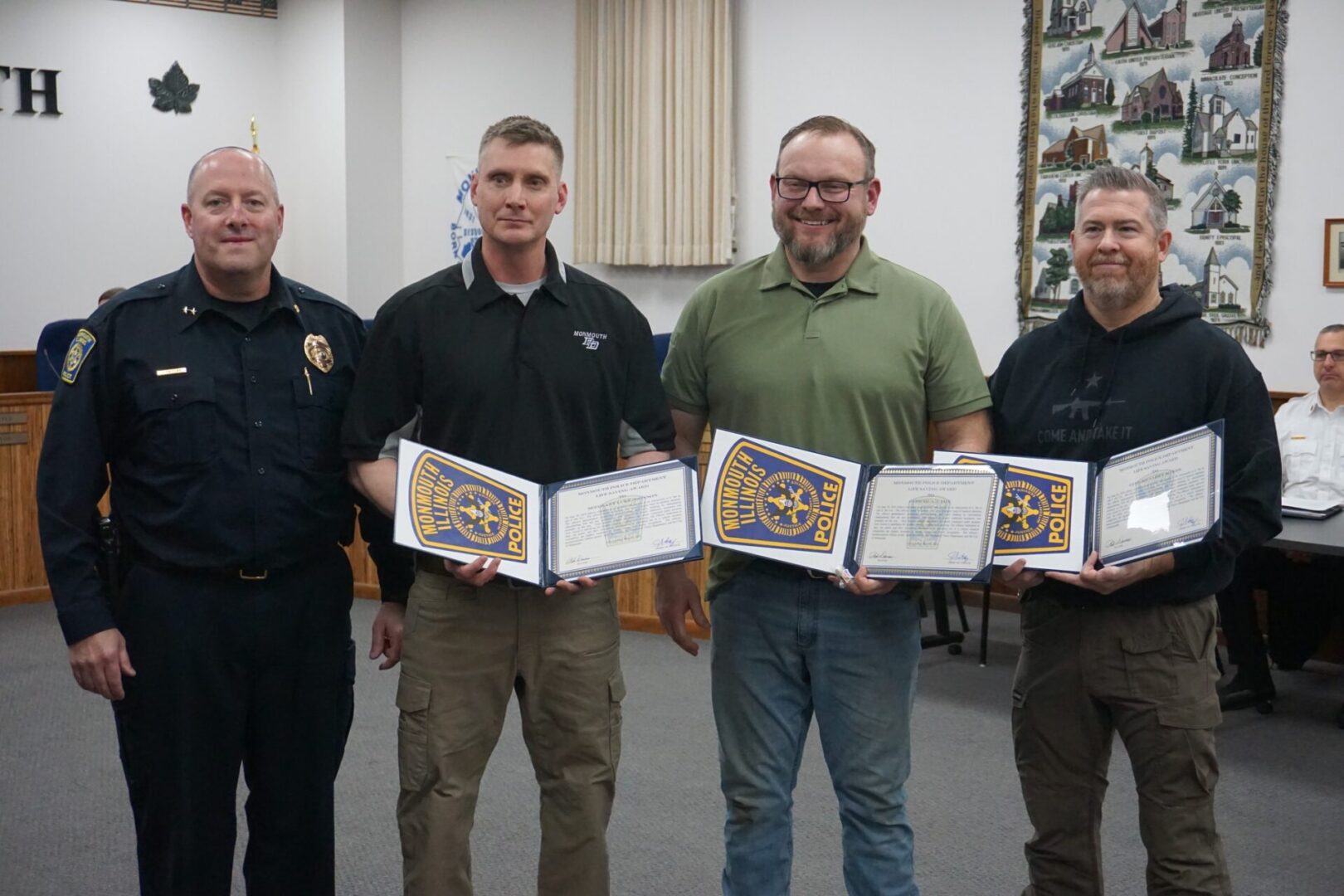 Three life-saving awards were presented to members of the Monmouth Police Department for their actions on a call last year,