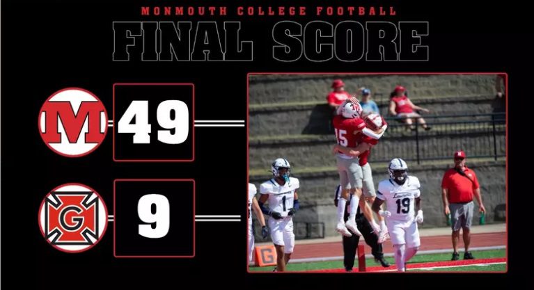 The Monmouth College football team scored 28 unanswered points in the second half to win at Grinnell 48-8 on Saturday.