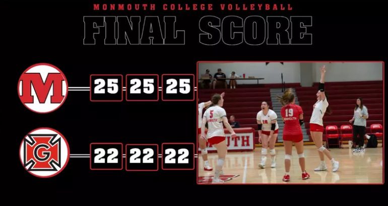 The Monmouth College volleyball team beat Grinnell College for the first time in a decade and moved into a tie